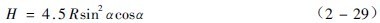 鋼球對磨礦過程有一定的影響,鋼球落下沖擊礦石的能量,來自它落到終點時的動能。此動能的大小,決定于鋼球的落下高度。而磨機的轉速又決定著鋼球的落下高度,所以決定磨機轉速的方法直接和分析鋼球落下時的動能有關。由圖3-2-11可知,鋼球落下高度H的值為
