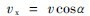 將vx和vy投到切線分速度v1的方向上,則