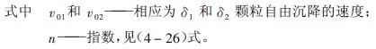 公式(4-26)適于粒群容積濃度不大,較大和較小粒度之比值小于1.5的情況。