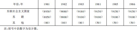 根據(jù)聯(lián)合國貿(mào)易和發(fā)展會議商品委員會鎢委會1986年11月第18屆會議報告資料,近幾年世界鎢精礦的產(chǎn)量和消費量分別列于表9-2-26及表9-2-27。