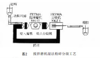 以攪拌磨機為例,其濕法粉碎工藝如下圖2。